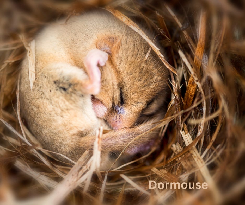 The body of a dormouse measures between 6cm to 9cm, with the tail approximately the same length. Dormice weigh between 15g to 40g, the latter weight before hibernation. Dormice have even been known to snore. They are able to enter a state of ‘torpor’ by dropping their body temperature. This is used to save energy when food has been scarce.